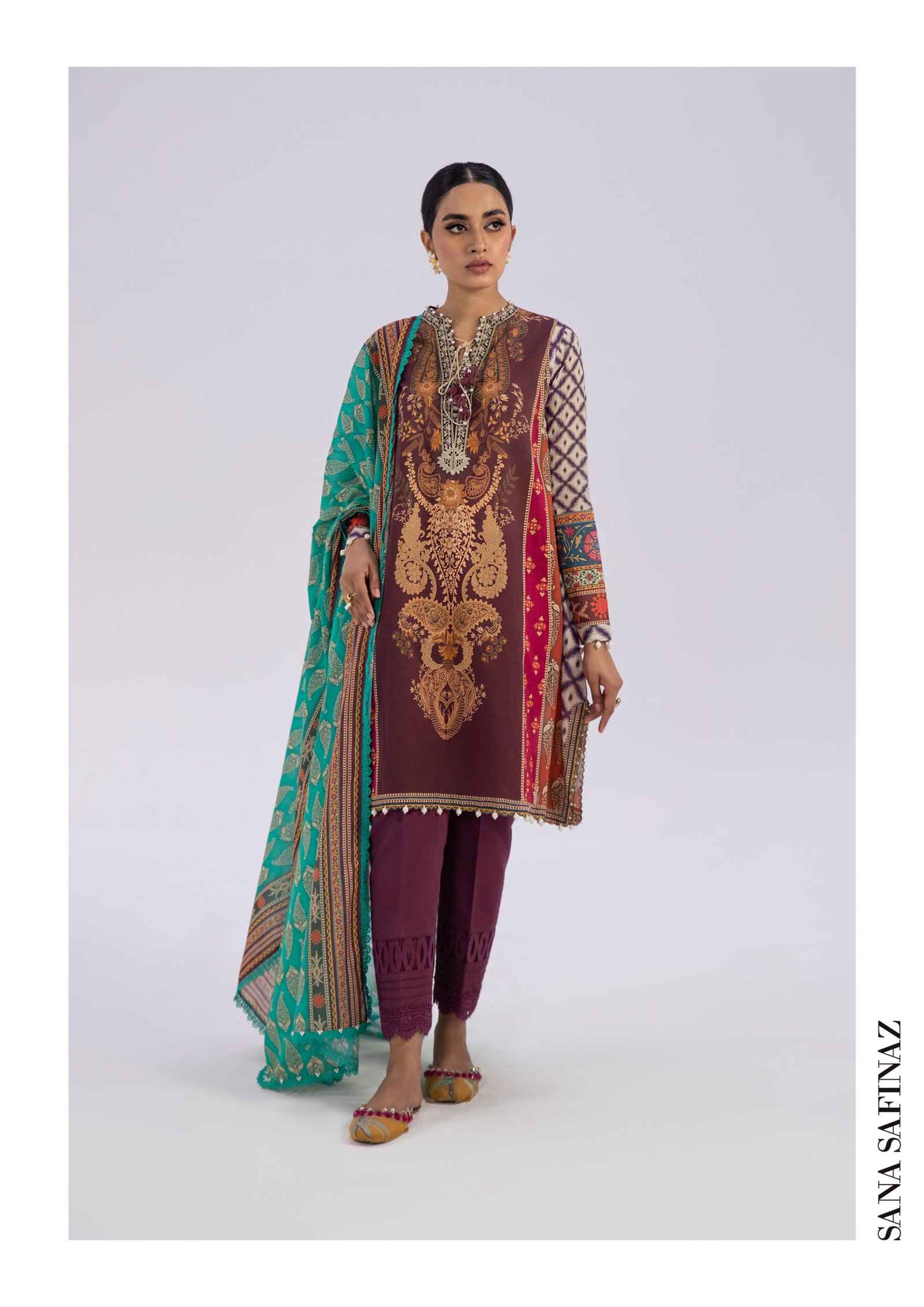 Beige & Maroon Printed Lawn Suit – Sana Safinaz3
